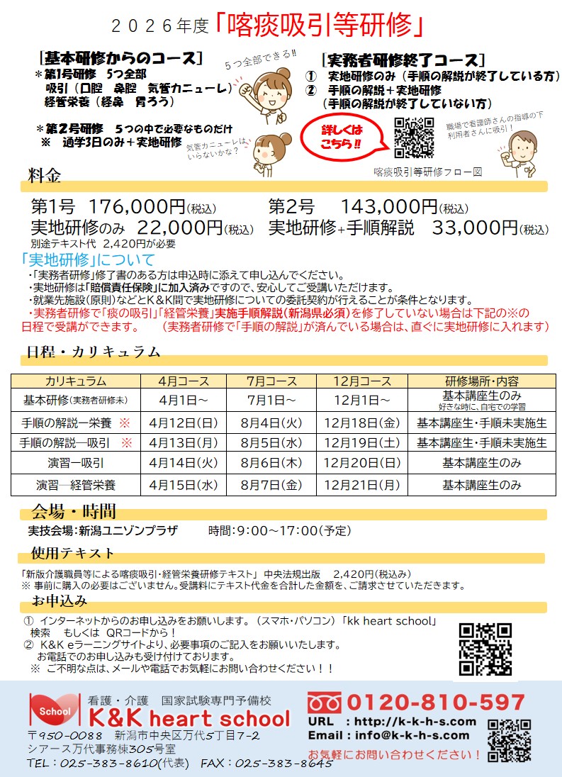 新潟県必須「手順の解説」講座も実施!すぐに実地研修に入れます!